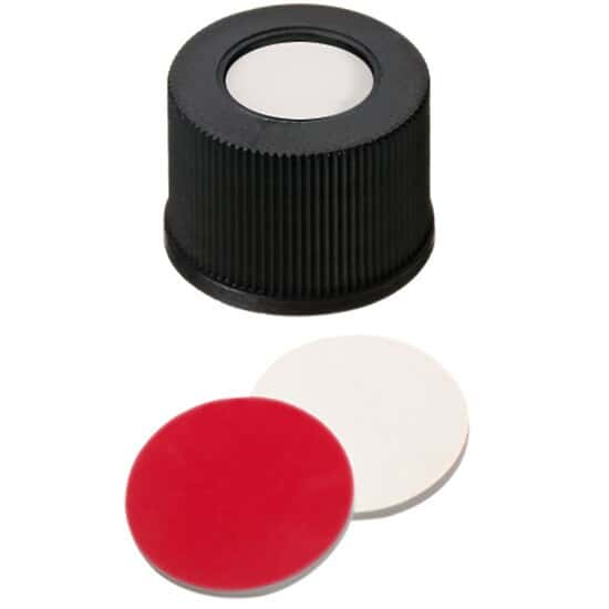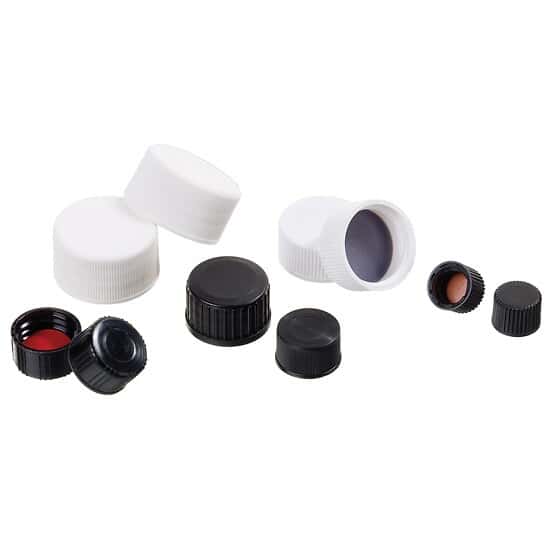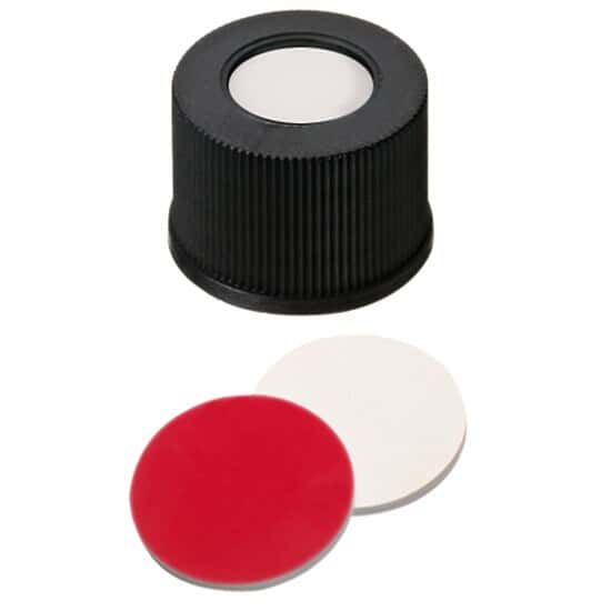 - CAP 15MM BLCK SIL/PTFE 1000/PK/Screw Cap, Polypropylene, Black, 15 mm, Silicone/Red PTFE Septa; 1000/pk/