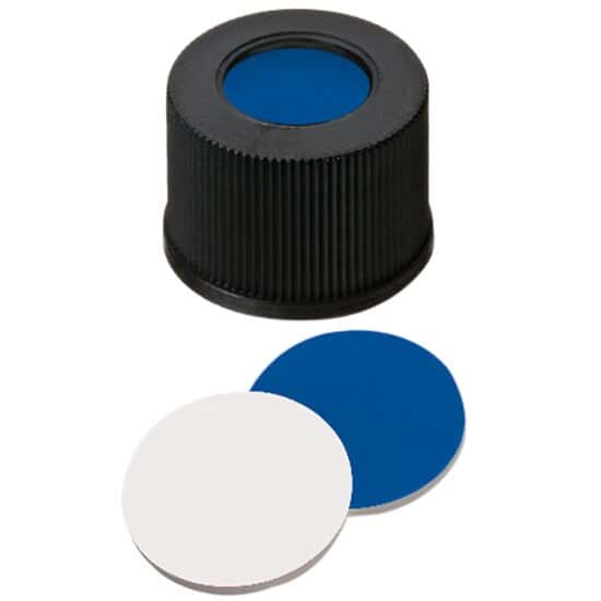 - CAP 13MM BLCK SIL/PTFE 1000/PK/Screw Cap, Polypropylene, Black, 13 mm, Dark Blue Silicone/PTFE Septa; 1000/pk/