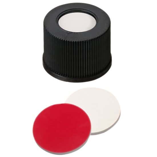 - CAP 13MM BLCK SIL/PTFE 1000/PK/Screw Cap, Polypropylene, Black, 13 mm, Silicone/Red PTFE Septa; 1000/pk/