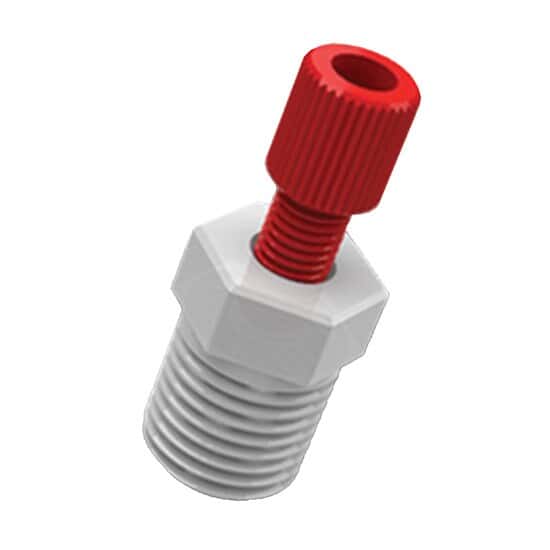 - ADAPTR 2MMODX1/8NP RED/GRN 1EA/Tubing Adapter, 1.8-2.0 mm OD x 1/8" NPT(M), Red PP Nut, Green ETFE Ferrule; 1/EA/