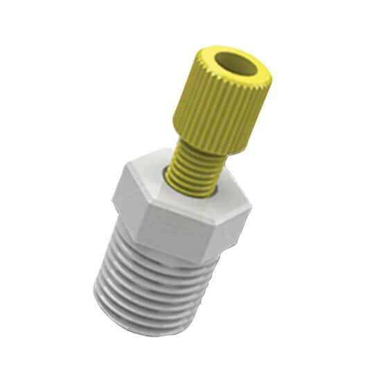 - ADAPTR 3MMODX1/8NP YLW/ORN 1EA/Tubing Adapter, 3.0 mm OD x 1/8" NPT(M), Yellow PP Nut, Orange ETFE Ferrule; 1/EA/